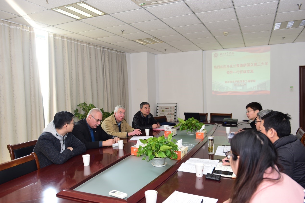 12月29日下午,乌克兰敖德萨国立理工大学得雷维扬琴科·亚历山大·乔治耶维奇教授和西多连科·伊戈尔·伊万诺维奇教授一行来我院考察交流,会议由优米直播视频副院长(主持工作)胡文军主持,副院长潘建新、副院长黄旭以及相关老师参加此次考察交流座谈会。