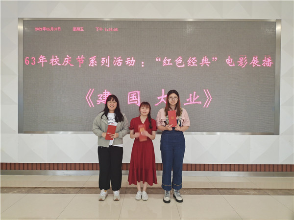2021年5月7日,作为63周年校庆节“红色经典”电影展播中的经典保留片目,《建国大业》在东区会堂重新上映。在众多党员同志的热烈呼吁中,信工党员齐聚东区会堂,集中观看影片,重温建国前的那段激情澎湃的历史。影片中,面对国民党的飞机炮火,共产党员以及民主战士们临危不惧、直面困难的精神令人动容。国内国际的种种质疑不能使共产党员止步;明里暗里的刺杀不能使渴望统一的各届人士让步。民心所向,众望所归,坚持不懈的努力终于获得了各民主党派的信任,政协会议终于召开,新中国即将成立,中国人民终于迎来了和平与统一,终于挺直腰杆,站起来了。