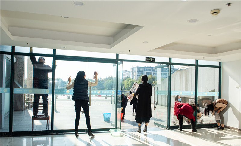 之后,学院成立文明创建领导小组,由学院领导分别带队巡查,分区域进行自查自纠,发现问题之后立即整改。接着,发动全院师生开展了一次集中大清洁活动,对31号楼楼内办公室、实验室及周边绿化带、停车场进行了全面清洁。师生志愿服务队同时启动,巡查保洁工作持续进行。
