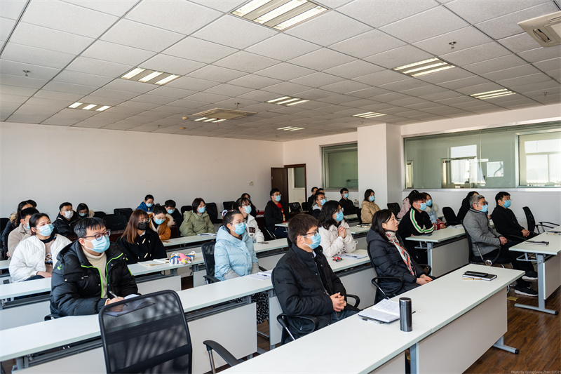 开幕式大会上,王纲同志代表中共湖州市第八届委员会作报告,并动员全市上下坚定不移走绿水青山就是金山银山之路,奋力建设绿色低碳共富社会主义现代化新湖州。在学院会议室,每位党员同志都聚精会神,认真聆听工作报告,不时为工作报告所打动、所鼓舞。
