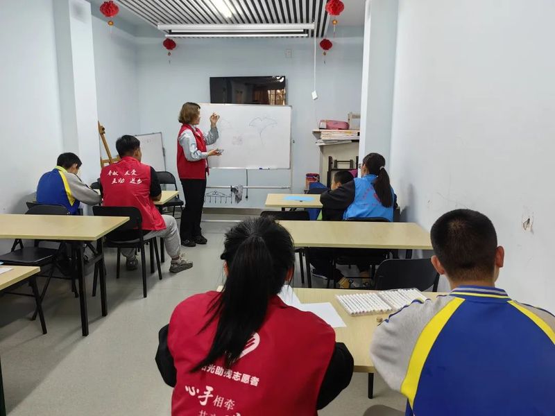 活动中,志愿者们陪伴自闭症儿童进行体育运动,并尝试着和他们进行交流和沟通,教他们画画和折衣服等,尽可能的打开他们心灵的窗户,希望他们能够尽早的融入社会,成为社会的一部分。