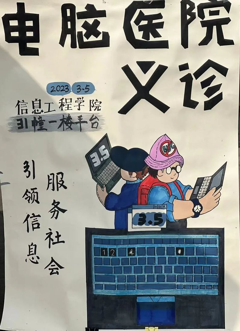 此次义诊活动,志愿者们不仅发挥自己的专业优势,将理论和实践相结合,也帮同学们解决了常见的电脑问题,充分彰显了信工学子用行动践行志愿服务,身体力行弘扬雷锋精神。