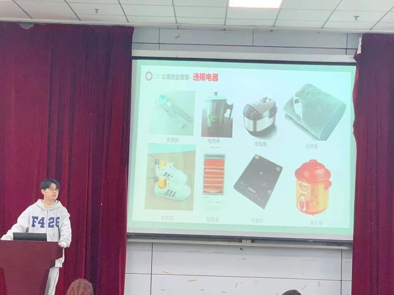 会议伊始,学院文明中心负责人介绍了学院公寓管理的相关工作及目前存在的问题,以视频和图片展示的方式列举出寝室中可能会出现的违规电器,并结合以往发生过的危险事件案例强调寝室用电安全的重要性。之后,学院公寓部部长指出近期校检、院检中存在的常见问题,并就学生宿舍的卫生、安全、环境等问题与参会同学进行了交流和研讨,同时还鼓励寝室与寝室之间要形成和谐友好、互帮互助之风。