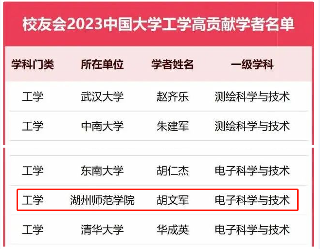 近日,在全国第三方大学评价机构艾瑞深校友会网最新发布的2023中国高贡献学者完整名单中,我院院长胡文军教授在电子科学与技术一级学科入选“2023中国高贡献学者”榜单。