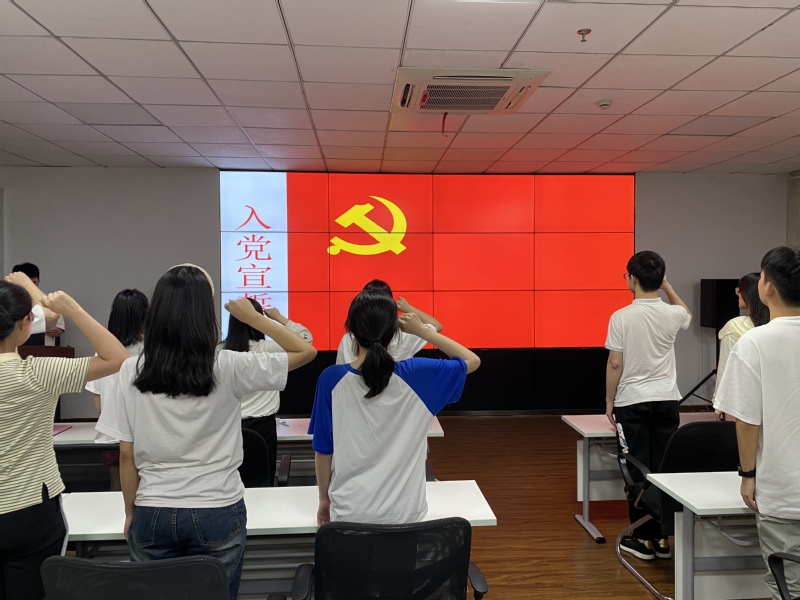 活动伊始,老党员重温入党誓词,并带领新党员进行入党宣誓。在这个仪式庄严而庄重的时刻,优米直播视频学生党支部迎来了一批优秀的新党员。他们毅然决然地站在了党旗下,庄严宣誓,表达了对中国共产党的忠诚和对人民事业的热爱。同时,老党员们也通过重温入党誓词,再次表达了自己对党的无限忠诚和对党的初心不忘的坚定信念。