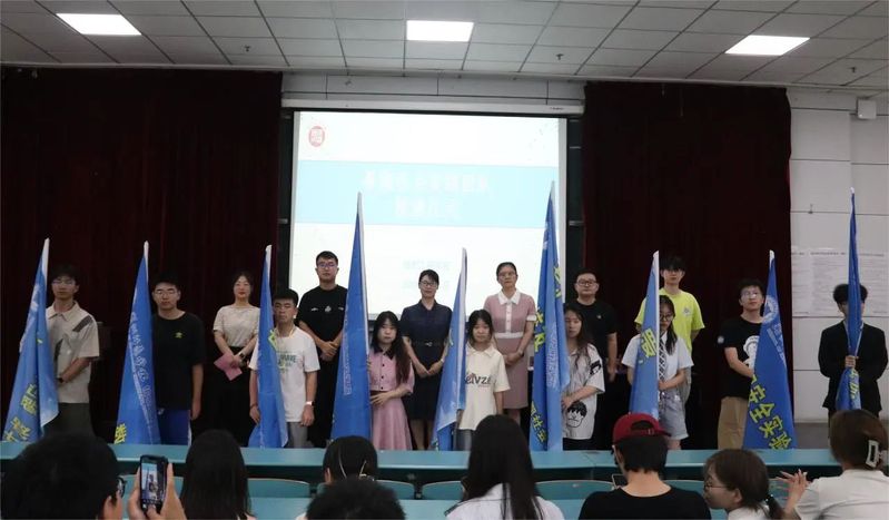 最后,各团队代表持旗上台,集结完毕,带着青春的激情,准备出发。希望他们可以在社会实践中用脚步丈量祖国大地,用内心感应时代脉搏,在社会课堂中受教育、长才干、作贡献,在观察实践中坚定信念听党话、跟党走,以青春力量奋进“两个先行”,用实际行动为学校增添青春色彩。