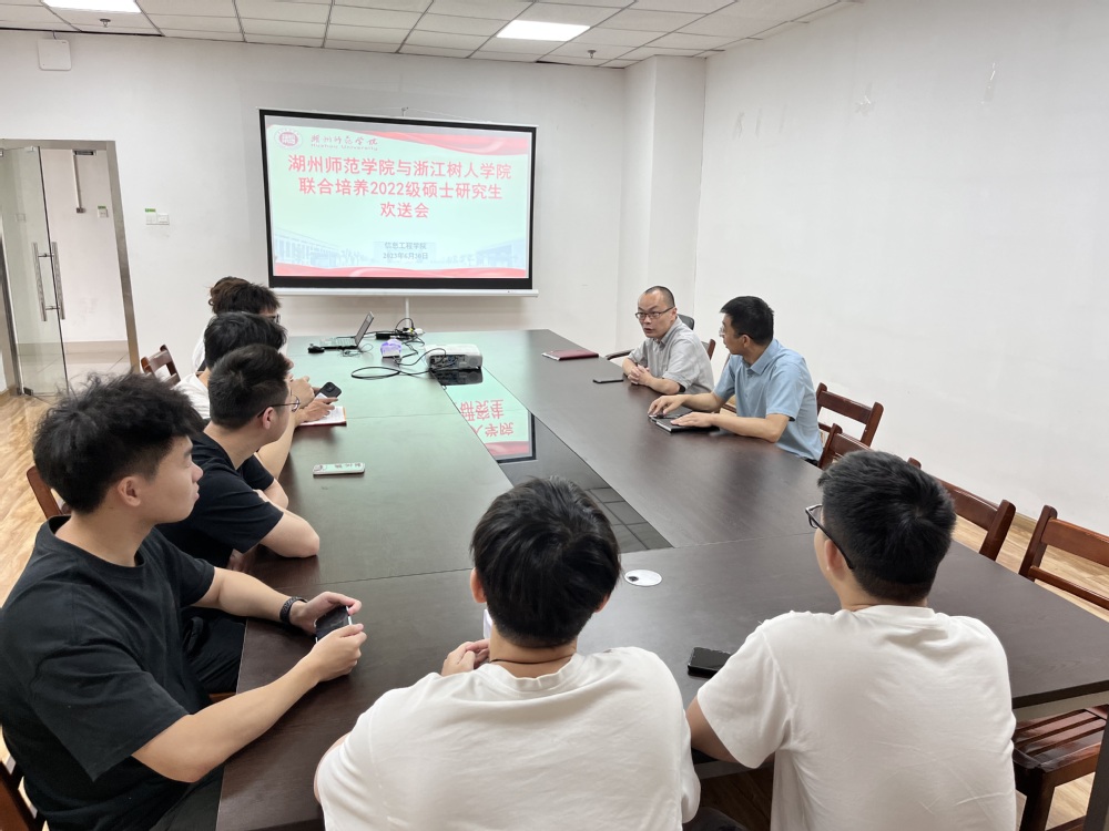 为顺利推动学院与树人学院研究生联合培养工作,在学院领导一行前往浙江树人学院信息科技学院考察交流之后,学院与树人学院正式就联合培养研究生进入树人学院学习进行了推进工作。6月30日上午,学院为赴树人学院进行学习的10名研究生召开了欢送会。张永副院长代表学院向联合培养研究生介绍了前期去树人学院考察交流的情况,针对联合培养研究生的相关管理工作进行了详细介绍,对联合培养研究生在树人学院的学习提出了要求。