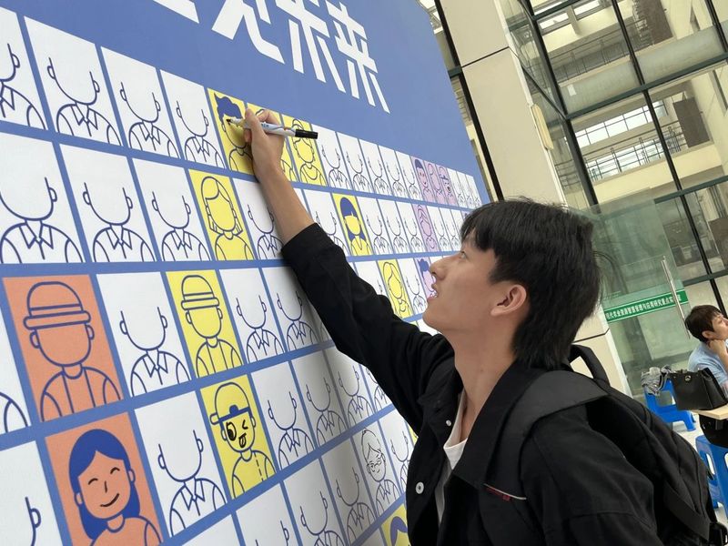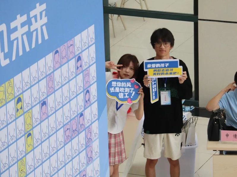 新生们在墙上画下心中未来自己的模样,家长和孩子、班主任与辅导员也在笑脸墙前合照,留下了美好的瞬间。
