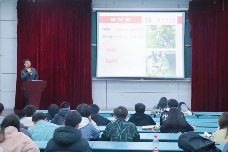 陈老师结合自身的专业学习以及支教经历,围绕“农村、农业”等方面讲述了自己的三农情结。随后提到志愿情怀,本科期间在感动中国人物徐本禹的感召下,他加入了华中农业大学本禹志愿服务队,参与大学生志愿服务西部计划,成为了研究生支教团的一员。