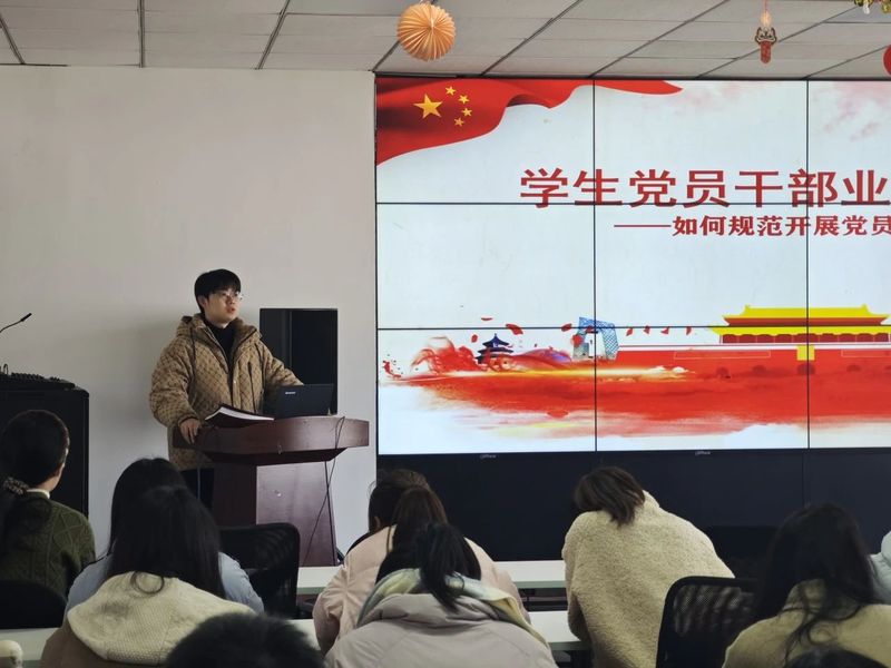 随后,陈老师面向参会全体党员学生干部进行了组织生活记录本规范性培训,重点强调了三个方面内容:第一,组织生活记录本记录要规范,应到人数、实到人数、缺席人数等考勤内容需规范记录;第二,支委会记录在讨论支部重大事项时需规范记录讨论内容和结论,支部书记要做总结陈述;第三,组织生活会的批评和自我批评环节,每位党员需开展批评与自我批评,评价内容规范记录。
