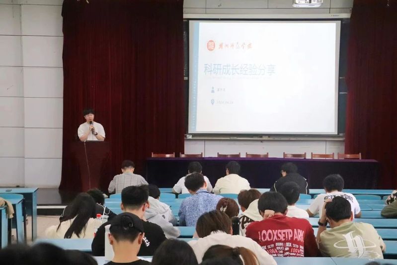 讲座伊始,首先由黄子鸿同学进行分享,他曾于研究生期间发表三篇sci论文,共计影响因子为22.7。他认为确定研究方向十分重要,可以帮助大家于科研期间更高效的利用时间。其次,他表示研一是采集实验数据的最佳时间,也是科研启动的最佳时机,能够为后续的论文写作提供有力的支持。而后,他针对研二和研三阶段提出两个选择,一是读博,多读文献,确认目标学校;二是工作,前往公司实习,增加经验。最后,他围绕研究方向、如何撰写论文等方面给出了具体的建议,为同学们提供了明确的学习方向。