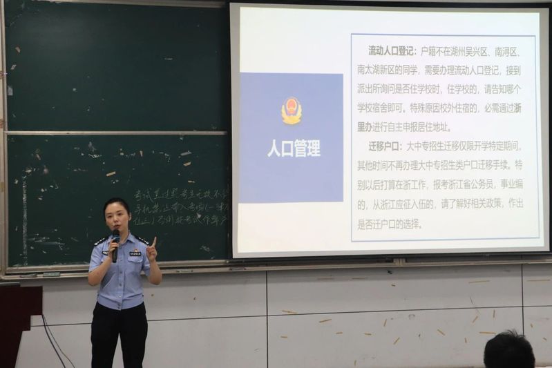 新生入学伊始是法治教育、安全教育、预防诈骗知识普及的关键时期,为切实增强新生安全防范意识,构建和谐平安校园。9月8日,我院在30幢222教室为2024全体本研新生分别开展了安全教育第一课,本次讲座特别邀请到吴兴区分局龙泉派出所高校社区民警杨美怡警官为同学们主讲。