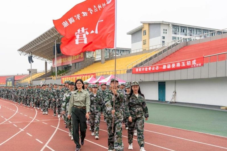 十里拉练,铁血铸魂。我院新生同学们身着迷彩戎装、精神抖擞地在体育场集结。学院党委副书记项瑜以及军训所在营的教官、教导员随队前行,拉练途中,同学们在校内道路、市政道路、沿路绿道、林荫小路等丰富道路中步履坚定、携手同行,用十公里拉练途中的汗水诠释着青春力量。