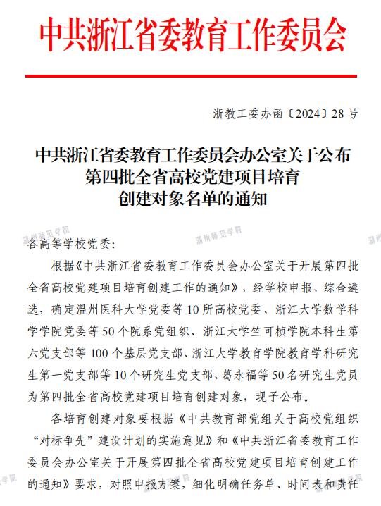 近日,中共浙江省委教育工作委员会办公室公布了第四批全省高校党建“双创”培育创建对象名单,优米直播苹果app计算机系教工党支部、研究生第一党支部分别入选为第四批全省高校党建工作样板支部和研究生样板党支部培育创建对象。