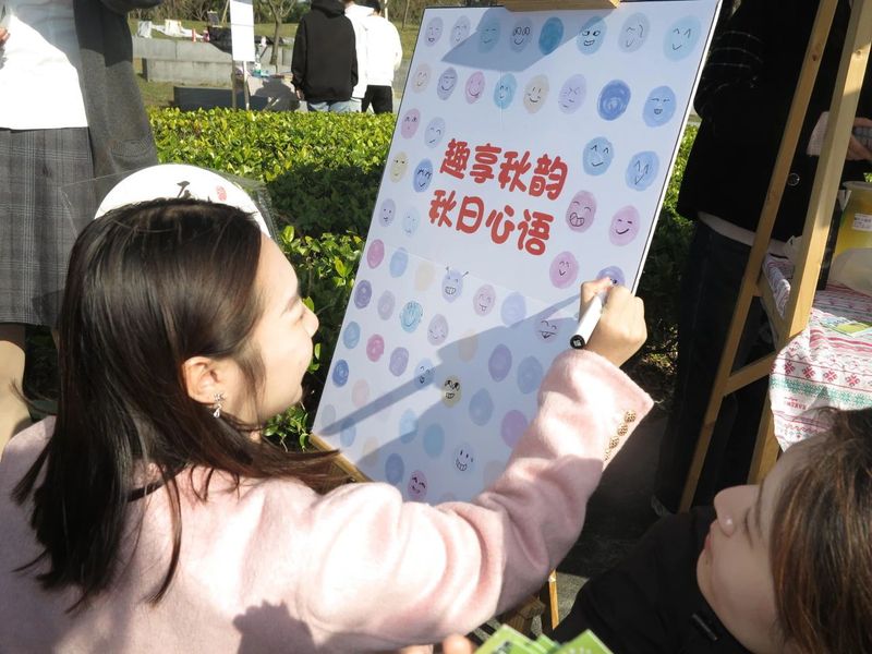 为丰富校园文化生活,为科研生活注入轻松气息。近日,优米直播视频与教师教育学院共同在德清湖畔月亮广场举办了湖州师范学院“趣享秋韵,秋日心语”金秋游园会。十一月秋日午后的阳光洒落,志愿者们在德清湖畔旁精心布置了十二个主题摊位,吸引了大批学生前来参与,月亮广场上逐渐热闹起来。