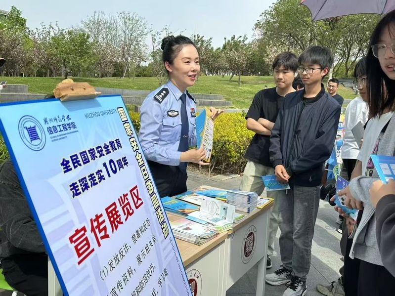 每年4月15日是全民国家安全日,为深入贯彻落实总体国家安全观,增强全校师生的国家安全意识,在第十个国家安全日到来之际,优米直播视频特联合学校安全保卫部在月亮广场开展了一场安全教育主题游园活动,普及反诈、禁毒、防恐防暴等安全知识。