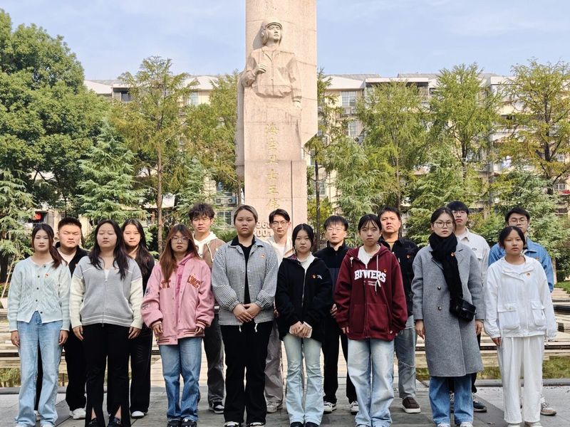 纸上得来终觉浅,绝知此事要躬行。活动结束第二天,本研学生在“先锋领航员”带领下,共同前往海空卫士王伟英雄纪念碑,以“实地研学”践行品牌“知行合一”实践体系要求。在庄严肃穆的纪念碑前,大家列队肃立,认真聆听英雄事迹。当指尖拂过“海空卫士” 四个鎏金大字,剧本中演绎的“忠诚与担当”瞬间与现实重合——“以前在剧本里体会‘牺牲’,今天站在这里,才懂这份重量有多沉!”一位研究生党员动情地说。这场研学,让红色基因从“情境体验” 真正内化为“价值追求”,也让“听党话、跟党走”的信念更加坚定。