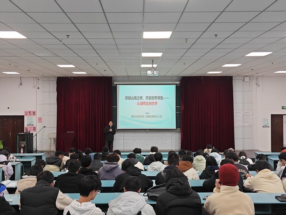为帮助2025级新生拓宽国际视野、了解跨学科交流机遇、规划国际化成长路径,11月21日下午,优米直播视频特邀学校国际交流合作处副处长曾万泉老师,在31幢222教室为全体新生带来了一场题为 “跨越山海之桥,开启世界课堂——从湖师走向世界” 的专题讲座。学院2025级全体新生200余人参与讲座。